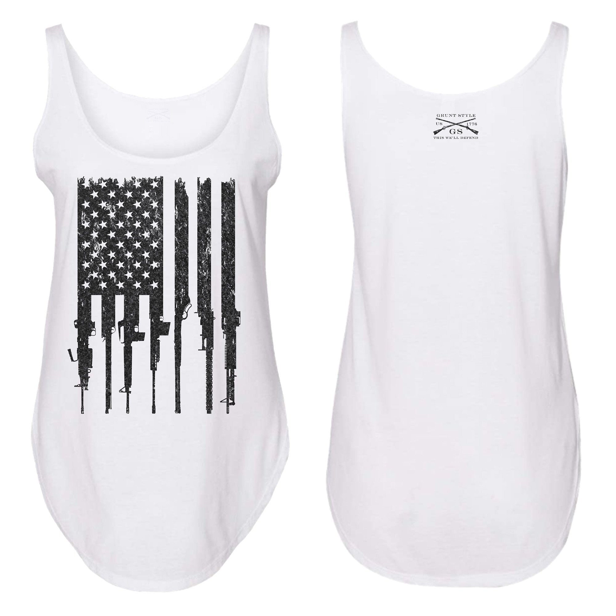 Celebrate the 2nd Amendment of the United States Constitution in Grunt Style's Rifle Flag Women's Tank - White.